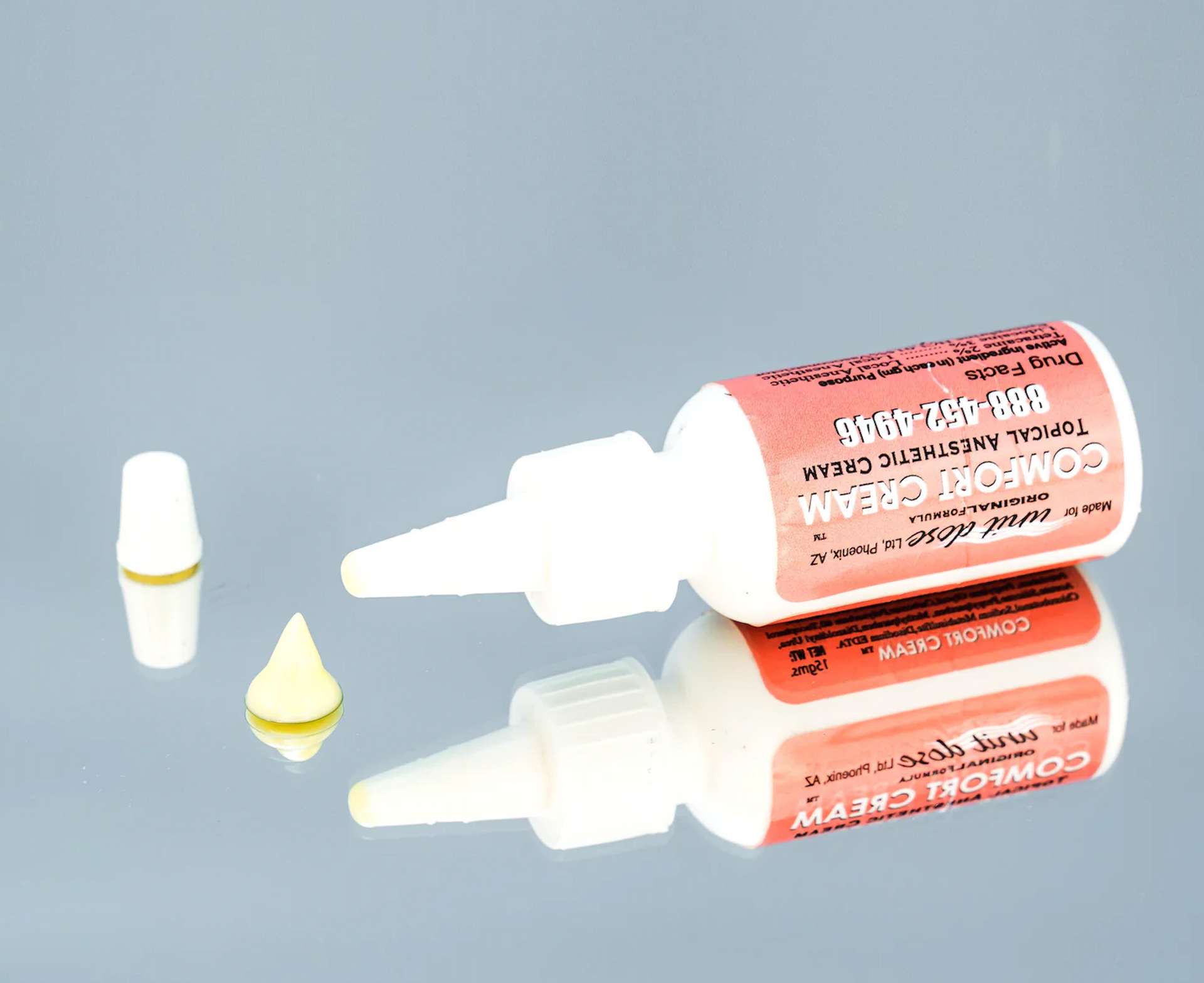 Comfort Cream™ is a pH balanced topical anesthetic cream for use by professionals. Contains Lidocaine 3%, Tetracaine 2% and Epinephrine 0.015%. Temporarily relieves pain from superficial skin injuries such as cuts, scrapes and abrasions.