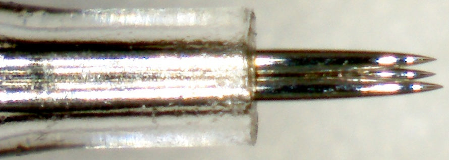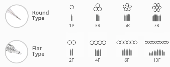 For precision plus control the 3 point needle cartridge will be a favorite. Great for eyeliner and lipliner, the "no-backflow" feature provides safety for each client.