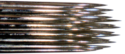 36 needles are tapered in a round configuration. Best for thick eyeliner; also good for smudgy effect. Use in Click Stick handle.