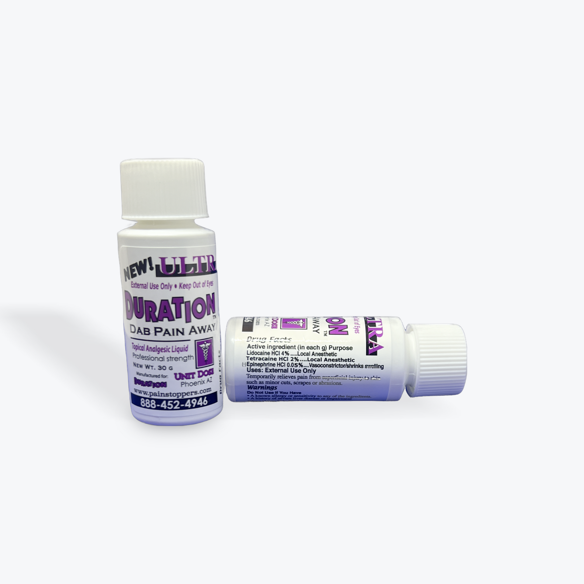 Dab ULTRA Duration over broken skin (lips and brows only) and wait 2-5 minutes or until skin blanches out around desired area. Repeat as needed which is usually just once. Use Numpot 5% to keep skin moist and numb after Ultra Duration™ is no longer needed.